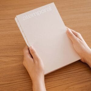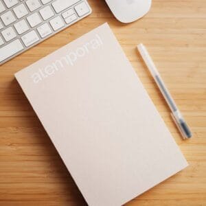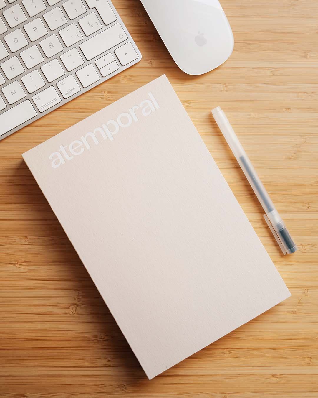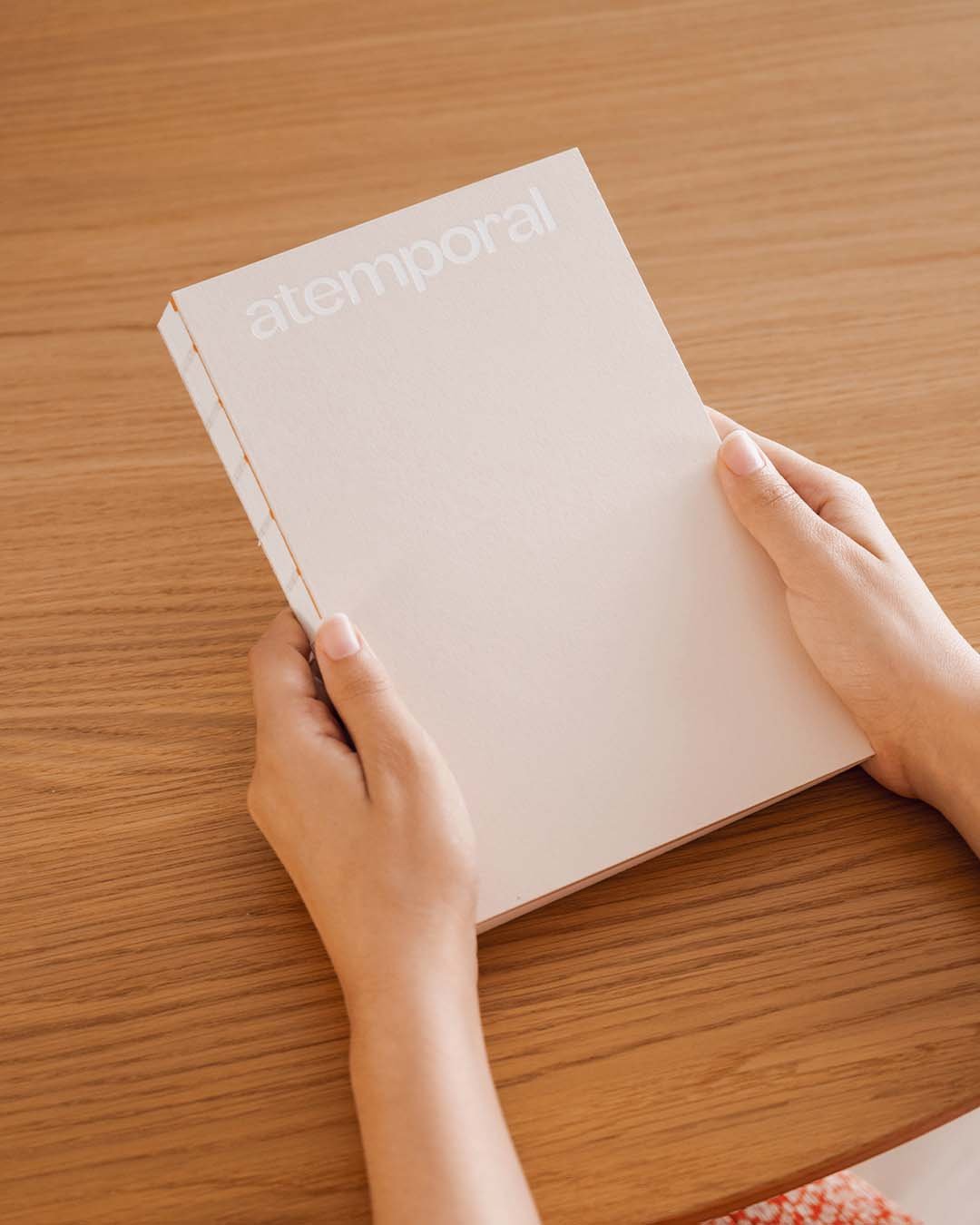 Esta Agenda Atemporal tiene una primera edición de 1.000 ejemplares; Cubiertas de papel Fedrigoni Materica Quarz, con stamping blanco. Impreso en offset con 2 tintas planas (Pantone 716U + Negro) sobre papel Fedrigoni Arena Rough Natural de 120gms en Punto Verde. 224 páginas. El tamaño es de 135 mm x 210 mm. Está escrito en castellano.